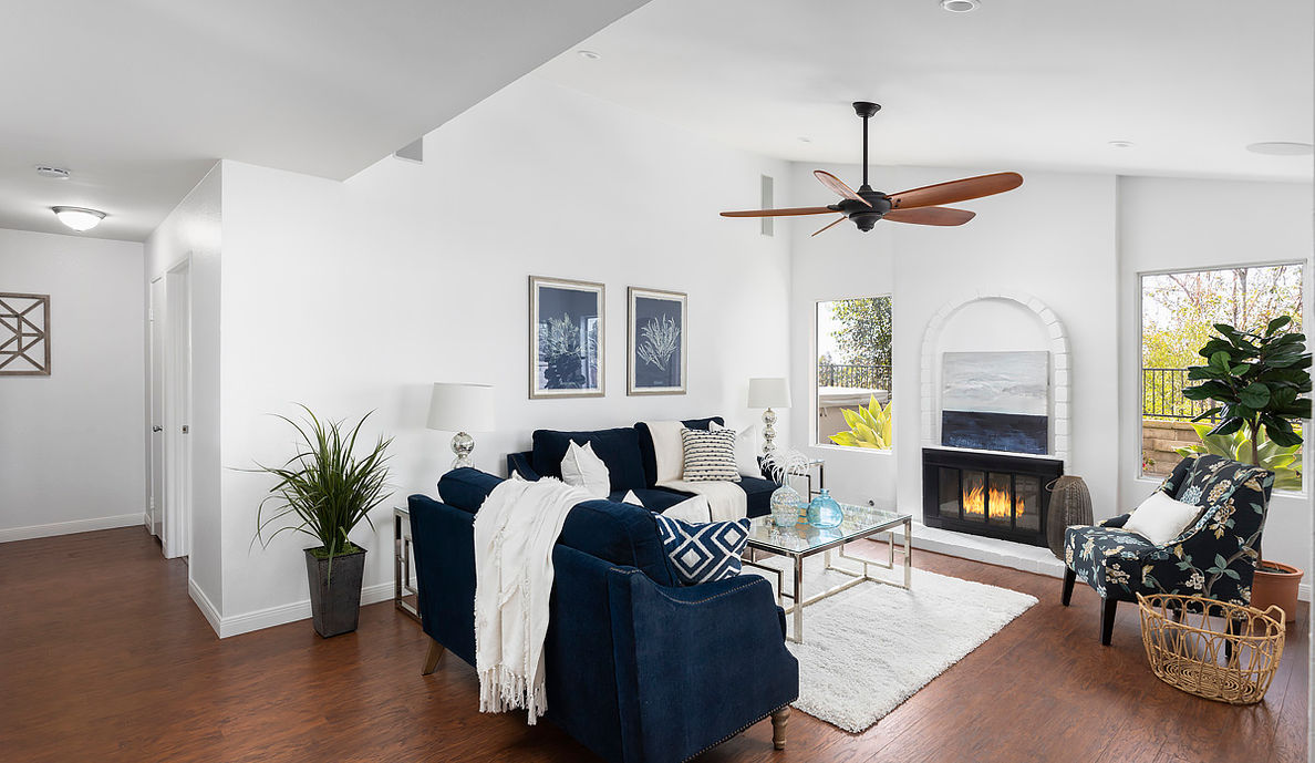 Step inside the home to the large great room with striking high ceilings, a cozy fireplace & looks out to the new covered patio, extending the living area with the California indoor/outdoor appeal. The ideal kitchen includes crisp white cabinetry, stainless steel appliances, granite counters, plus a quaint breakfast bar & dining area. Relax & enjoy the wonderful re- landscaped backyard complete with above ground spa, built-in fireplace & covered patio. Additional amenities of this lovely home include new paint both inside & out, wood laminate flooring, ceiling fans, newer water heater, newer furnace & ducting & an indoor laundry room. The home has been completely re-piped with pex, has leased solar panels, & surround sound in the great room.
